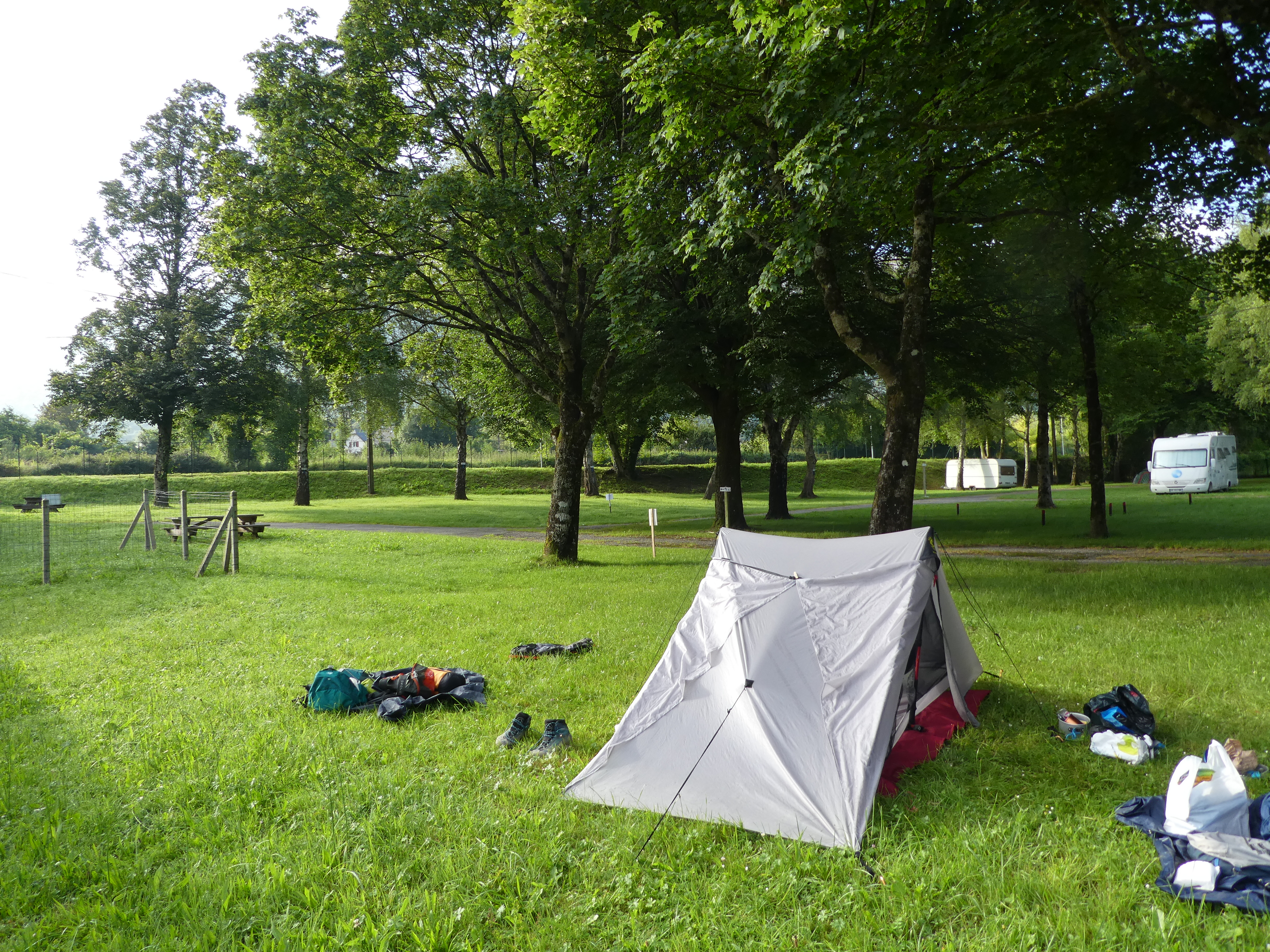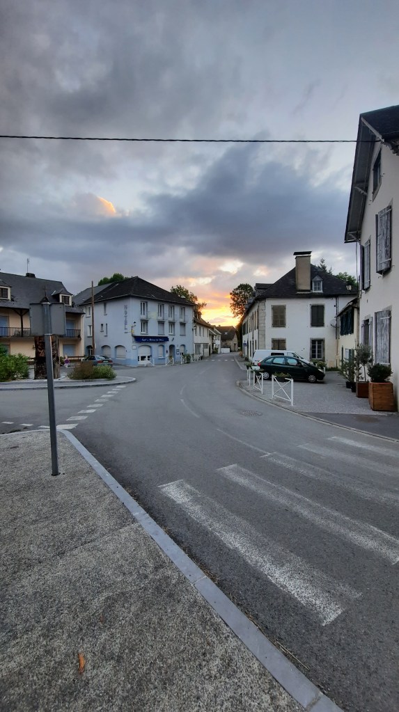 Après 2h d’attente infructueuse nous changeons nos plans : on prendra le train à Oloron-Ste-Marie, et ce soir on va aller dormir au camping d’Aramits qui lui est ouvert. Marche pas très agréable le long de la route pour y arriver, ça n’a pas duré très longtemps mais on a bien mal aux pieds ! Bonne soirée dans le joli petit camping.