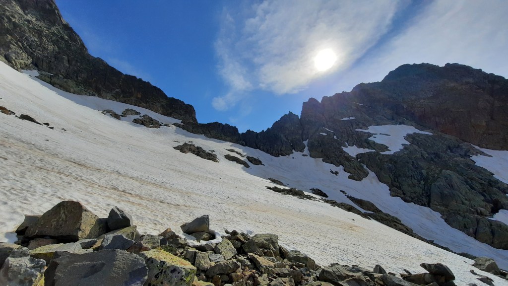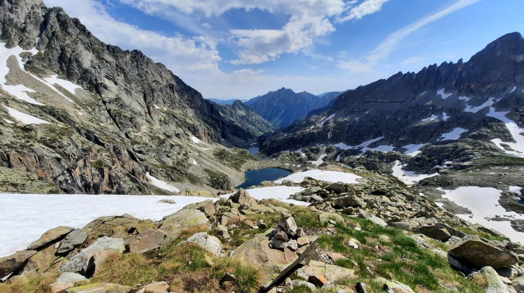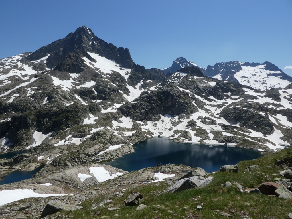 De là on profite d’une belle vue sur le pic de Cambalès, et les lacs de Cambalès dont certains sont encore glacés.