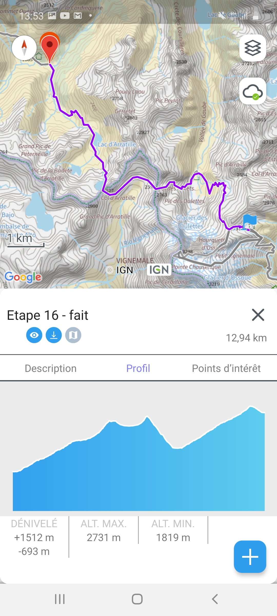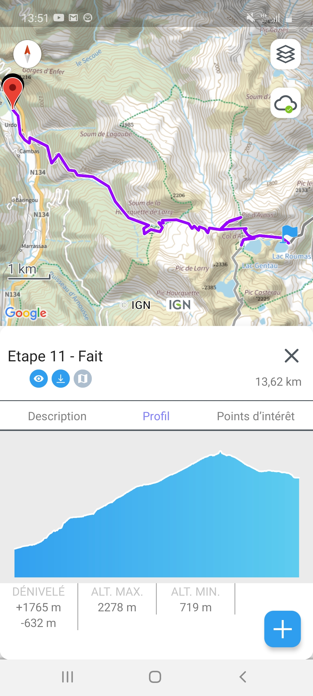 • D+ : 1765 m