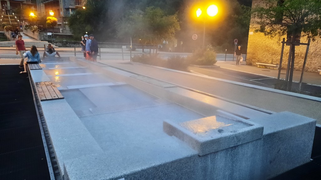 Pique-nique, puis pause dans le village en attendant le bus. Parce que demain c’est l’anniversaire de Maroussia, ce qui vaut bien une journée farniente à Ax-les-Thermes ! On y arrive vers 16h30, le temps de prendre une bonne douche et de faire un tour dans le village (c’est marrant de voir les fontaines d’eau très chaude) puis bon resto montagnard et bonne nuit dans un beau lit !