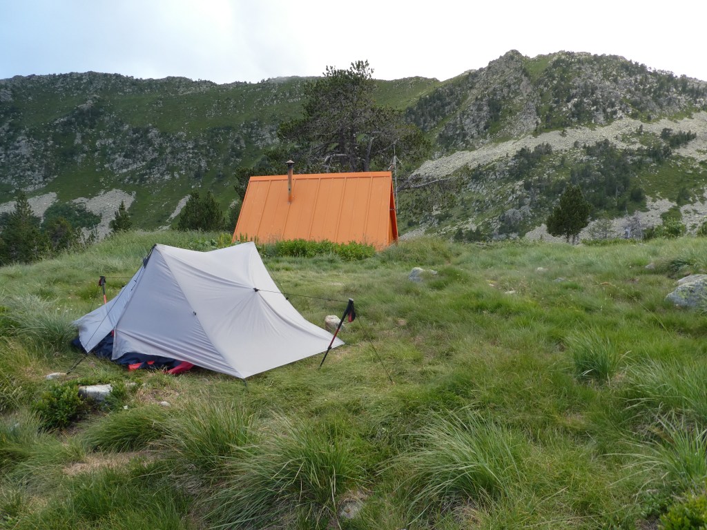 Une fois au refuge on profite du soleil en mangeant notre pique-nique. Montage de la tente, puis rapidement le ciel se couvre et l’orage arrive. Pluie et grêle, on est contents cette fois d’être dans le refuge !