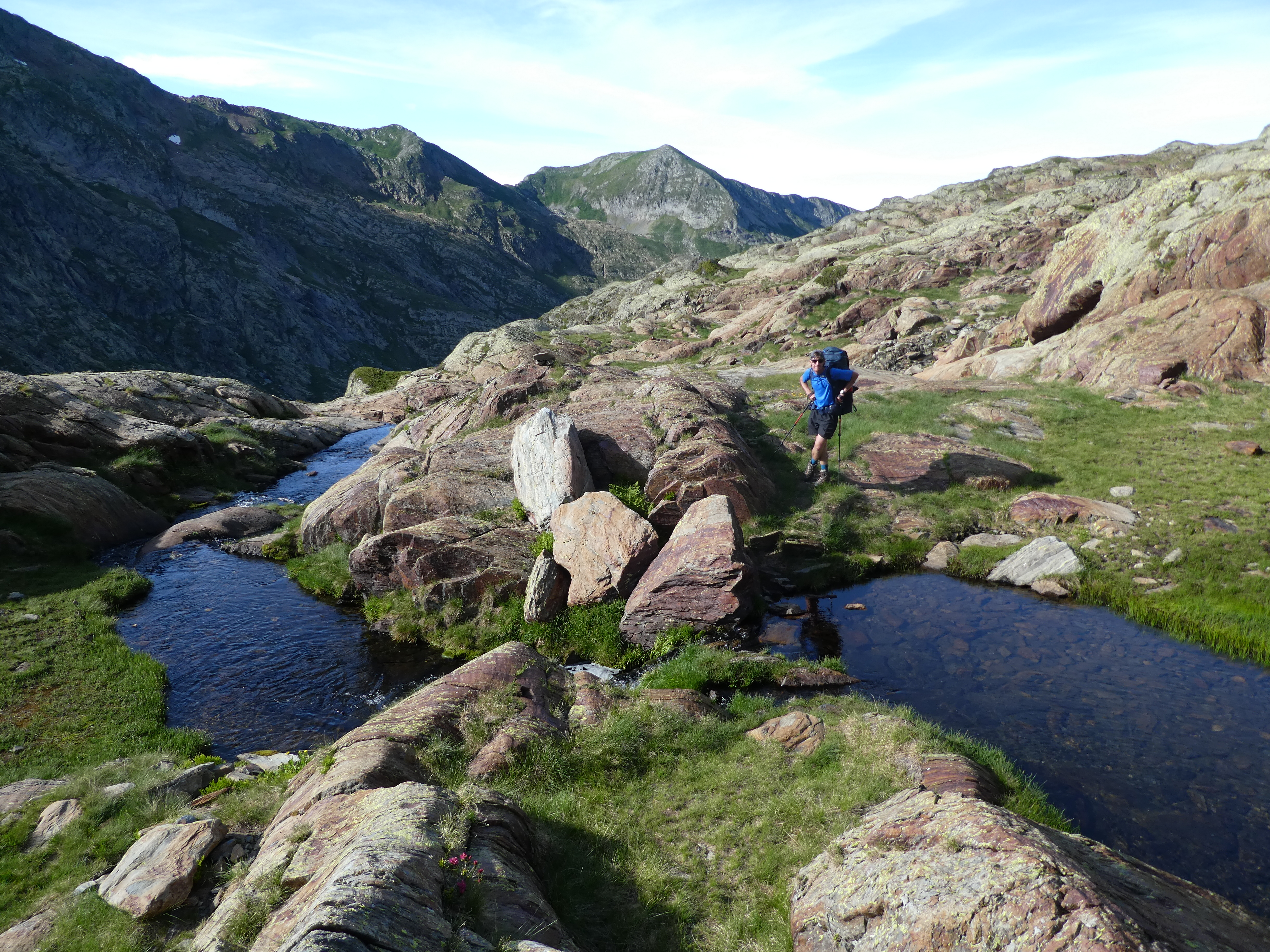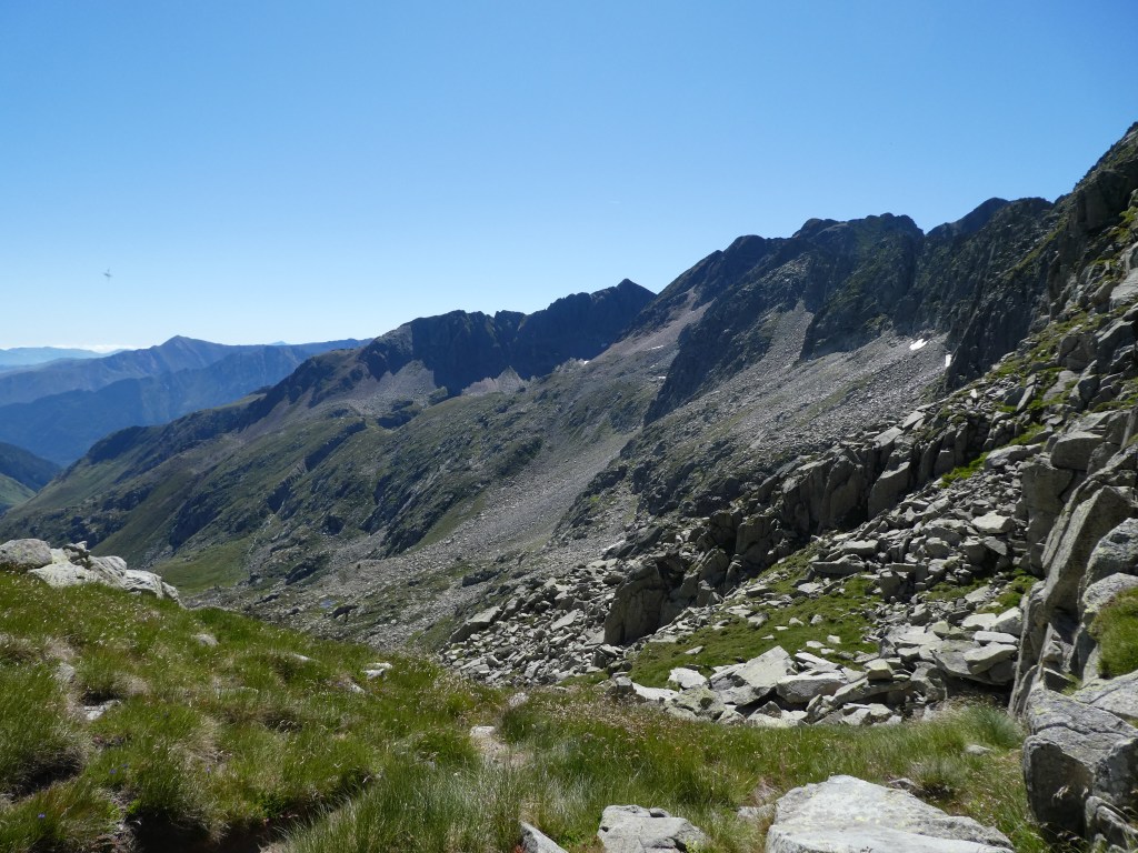 Encore une bonne descente vers la cabane de Sorda (encore plus jolie cabane libre). Puis on se trompe un peu d’itinéraire en voulant rejoindre le val d’Incles, heureusement sans conséquences, on arrive à trouver un itinéraire bis.