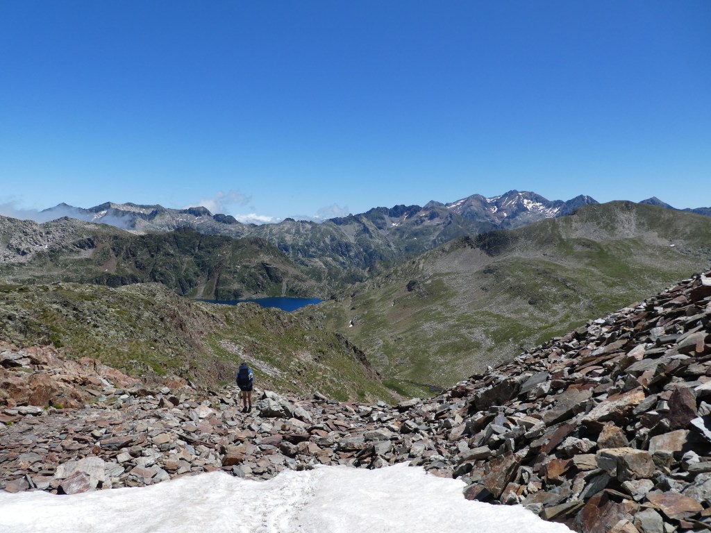 On quitte alors le parc naturel de Sorteny et on descend vers la cabane de Jan (jolie cabane libre). Puis c’est une grooosse montée vers le col de Varilles où l’on pique nique.
