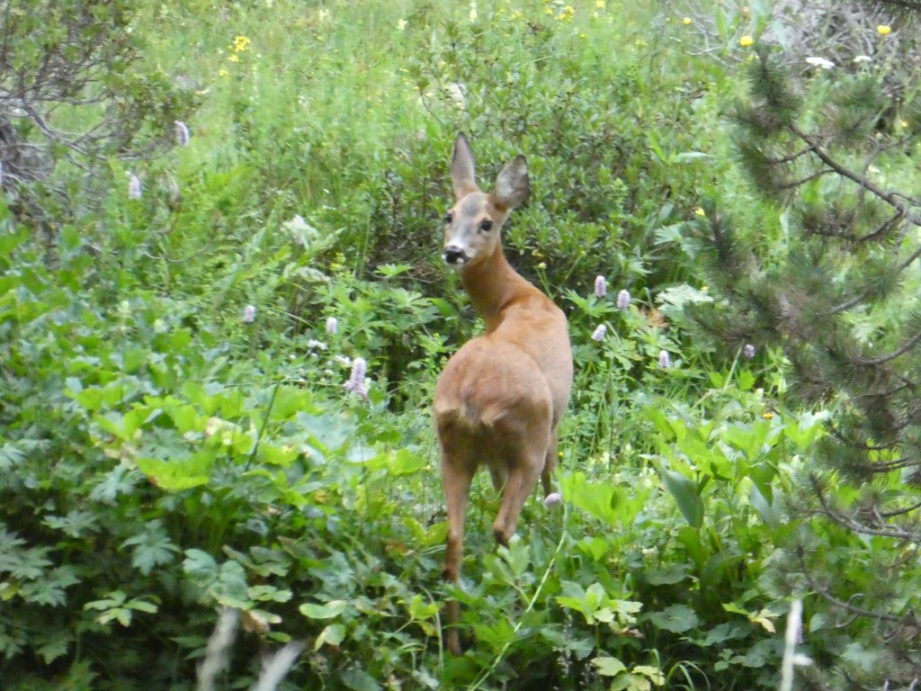 Départ du refuge par une bonne montée vers la cabane de Serrera. En chemin on a la chance de voir une biche avec 2 faons !
